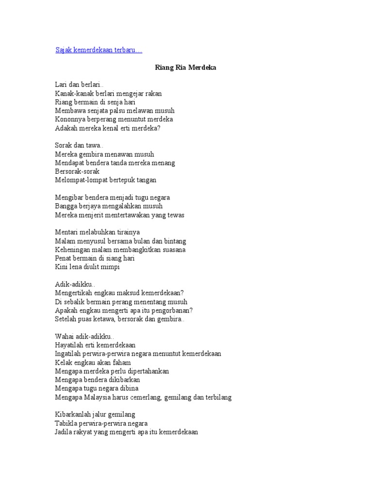 Koleksi sajak sajak merdeka smk toh johan trong perak. Dilihat dari judulnya, buku ini sekaligus merupakan sebagai bentuk untuk memperingati sajak sunda yang sudah menginjak umur 46 taun. 04 isi kompilasi sajak cikgu iswan 1999 2014. Seperti kereta kebal di medan perjuangan. Sajak sajak sedih sebelum kemerdekaan.