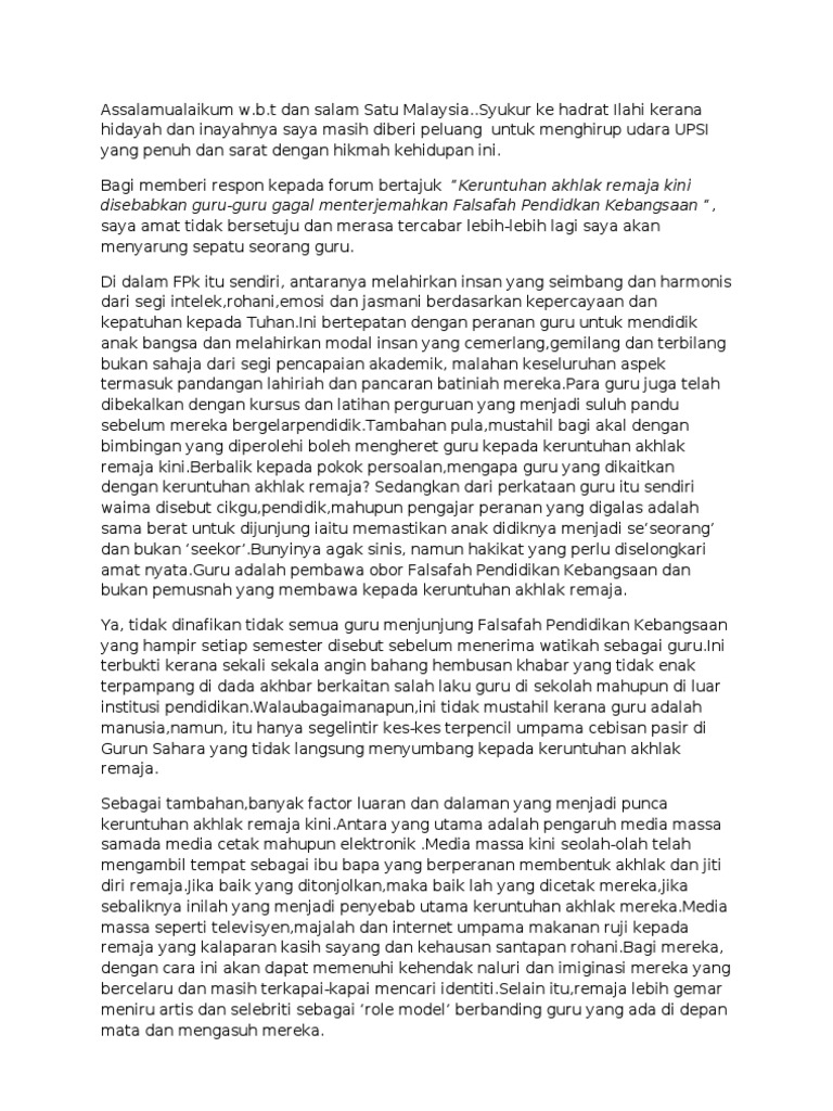 Teks Forum Keruntuhan Akhlak Remaja / Http Eprints Walisongo Ac Id 7314 5 Bab 20iv Pdf / Assalamualaikum,selamat pagi dan salam 1 malaysia saya ucapkan kepada barisan panel hakim yang arif lagi bijaksana, penjaga masa yang setia dengan masa.. Menuju tahun 2020,masalah keruntuhan akhlak dalam kalangan remaja sangat membimbangkan dan seperti tiada penghujungnya. Kita dilindungi daripada masalah dan pancaroba di dunia luar. Assalamualaikum wbt dan selamat pagi kepada semua penonton yang hadir dan para panel jemputan. Bertemu semula kita pada forum kali ini yang bertajuk punca keruntuhan akhlak remaja. Profesor fazri bin bakeri panel 3 penerapan nilai murni dalam keluarga boleh membentuk individu yang berakhlak baik.