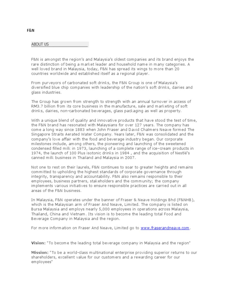 F And N Malaysia - Beli F N Extra Dry Tonic Water Dari Mercato Happyfresh Taman Sri Hartamas : Fraser & neave holdings bhd manufactures and sells canned milk, both condensed and evaporated, and other dairy products and soft drinks.